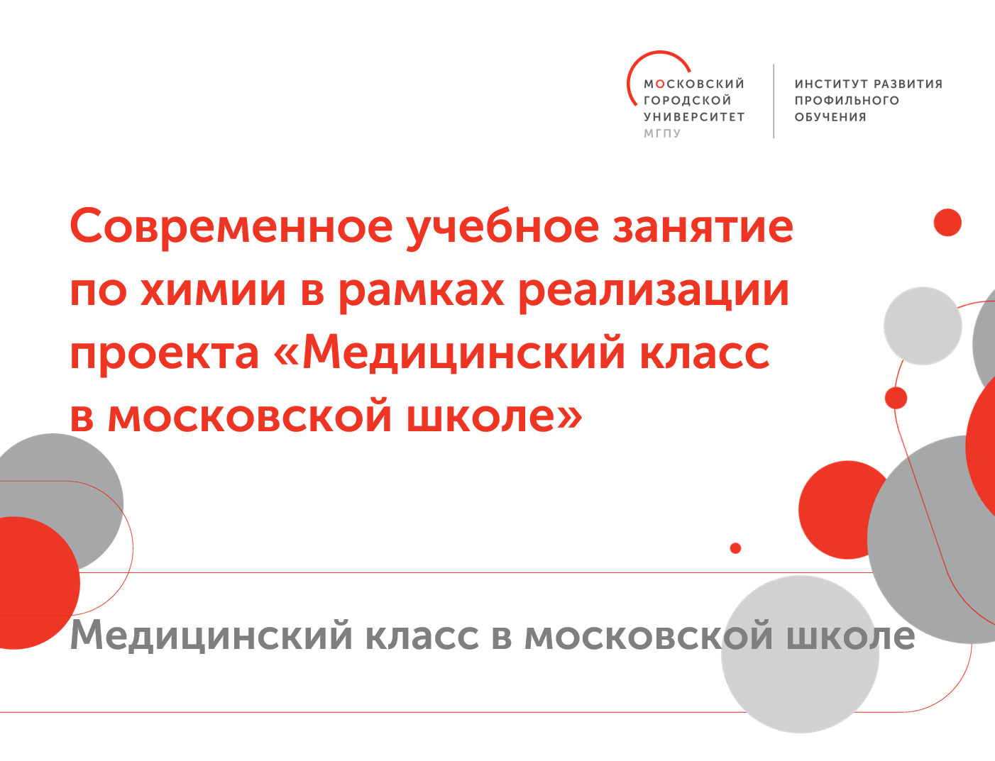 Цели реализации программы – совершенствование профессиональных компетенций обучающихся в области современного учебного занятия по химии в рамках реализации проекта «Медицинский класс в московской школе».