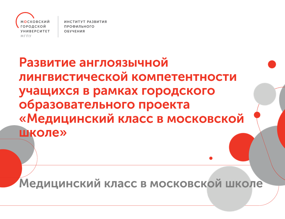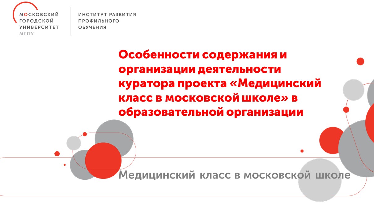 Область профессиональной деятельности – курирование городского образовательного проекта предпрофессионального образования «Медицинский класс в московской школе».