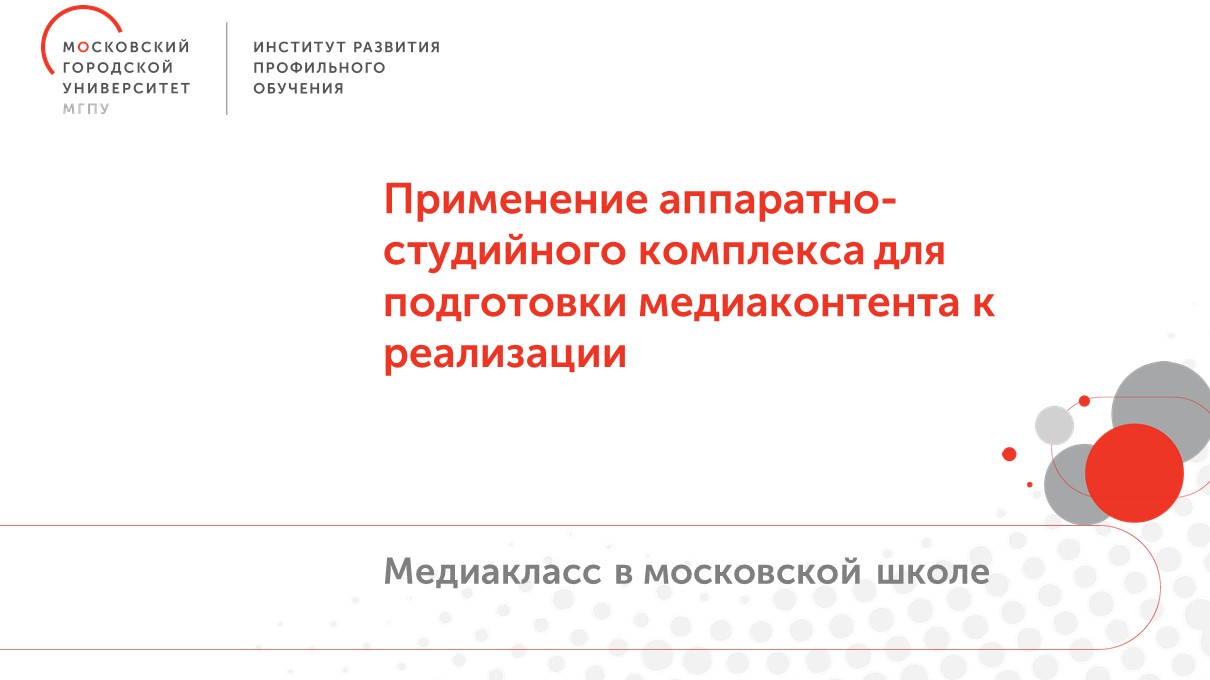 Область профессиональной деятельности – обеспечение деятельности учащихся на аппаратно-студийном комплексе (автоматизированной медиастудии) в рамках проекта ДОНМ «Медиакласс в московской школе».