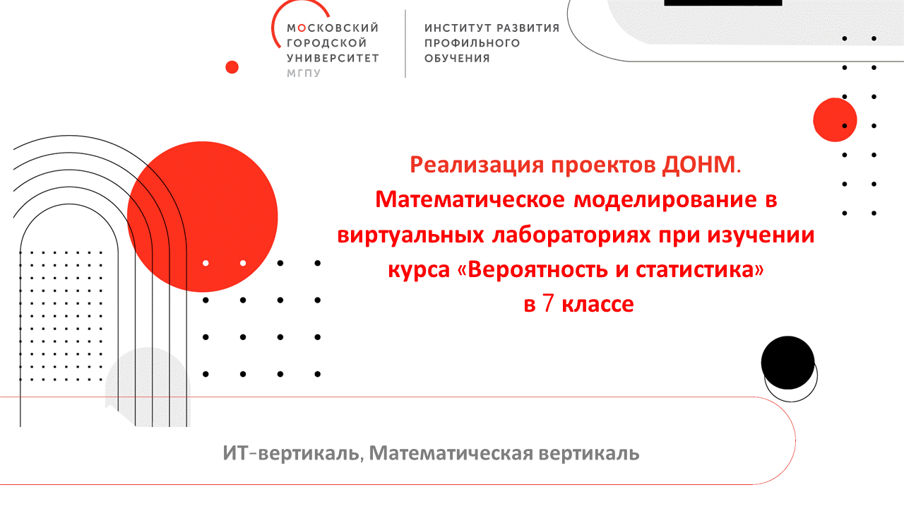 Цели реализации программы – совершенствование профессиональных компетенций обучающихся в области математического моделирования в виртуальных лабораториях при изучении курса «Вероятность и статистика» в 7 классе в рамках реализации проектов ДОНМ «ИТ-вертикаль», «Математическая вертикаль».